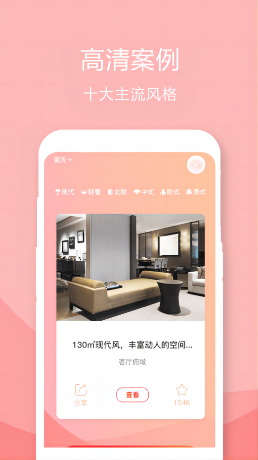 1)提供多种风格的装修案例,用户可以选择现代风格、中式风格、北欧风格等不同的风格。
