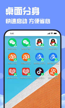 多开分身(应用多开、微信双开、微信分身、小号分身)支持一部手机轻松实现本地软件和游戏的多开、双开。源自内核级技术、不占内存,快速稳定!微商、娱乐、游戏用户必备神器! 支持更多应用游戏的多开、双开,使用更稳定、快速、更安全!
