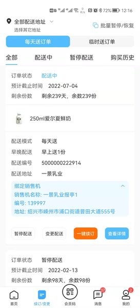 *具有订奶功能,支持定期订购,保证用户不会忘记及时补充牛奶。
