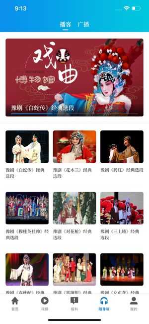 视听模块可直接收看(收听)广播电视台4套电视节目和4套广播节目的实时直播,实现最长7天之内的节目回看和两天之内的节目预约收看;可以点播收看河南广播电视台所有独家原创视频节目。