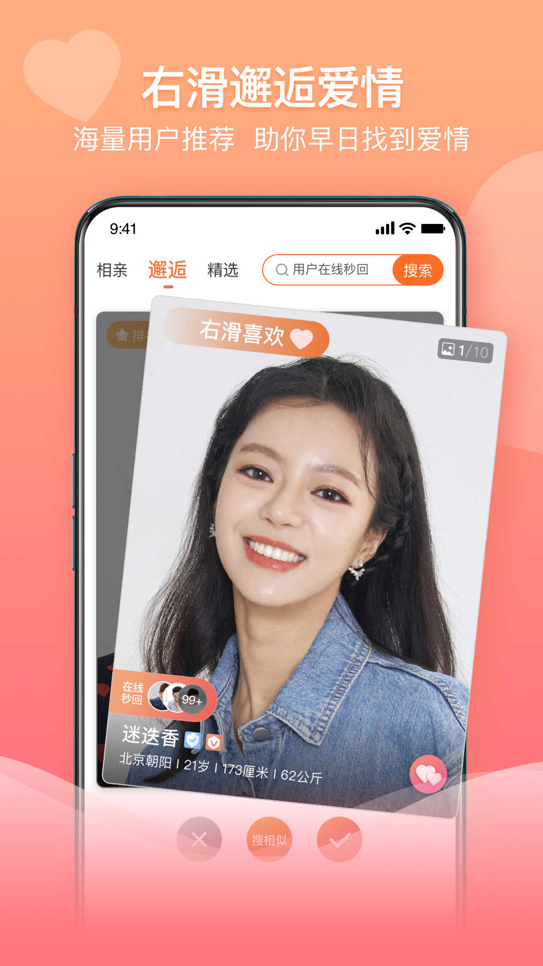 2、单身男女必备的脱单神器,真实高效的同城约会交友平台。