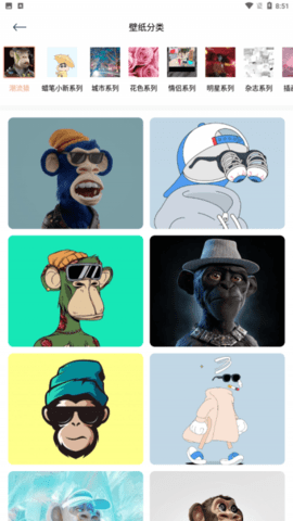3.种类区可以直接查找用户喜欢的壁纸种类进行使用