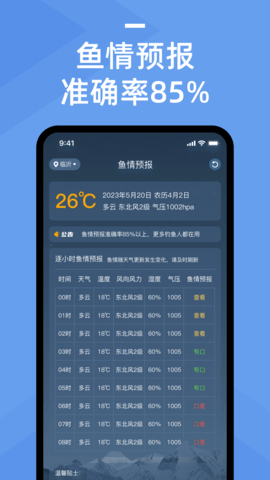 1、鱼情预报APP是专为喜欢钓鱼的用户们打造的一款专业的天气预报查询软件
