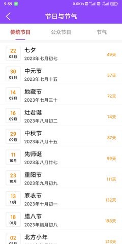 2.可以为用户提供详细的黄历信息,并根据不同地区的时间和昨天的黄历标记进行分类和显示