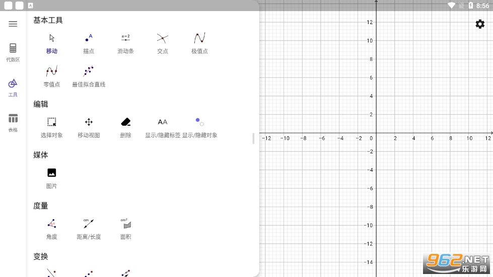 geogebra图形计算器基于AR技术,可以将数学模型快速的放置到3D环境中,绘制函数和参数曲面,体验几何图像的协同交互,需要的朋友可以来乐游网下载GeoGebra图形计算器最新版进行使用