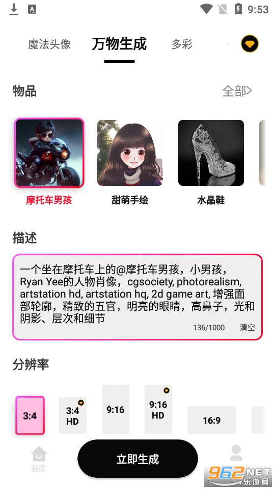 《styleart绘画》是为喜欢ai绘画的朋友们打造的手机软件,不需要拥有绘画的功底和基础也能够进行绘画,直接通过文字生成的方式来打造出各种不同风格的艺术画作就可以了,可以智能化的进行创作,各种风格应有尽有,快来生成你专属的艺术画作吧!