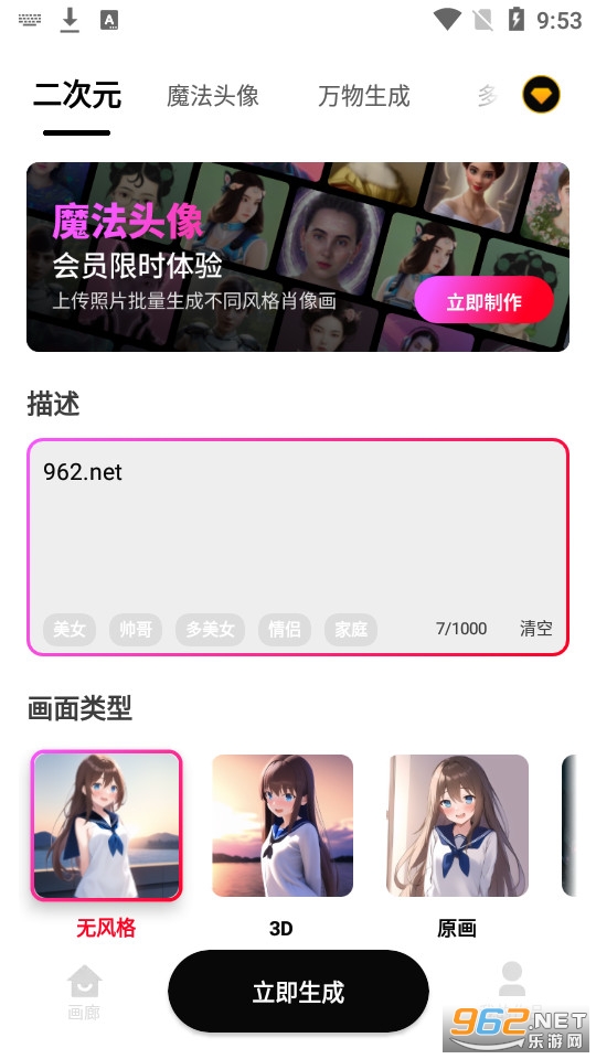 将文字变成迷人的数字艺术作品!你只需要输入一个提示语,选择一种艺术风格――然后看着Styleart在几秒钟内将你的想法变成现实!