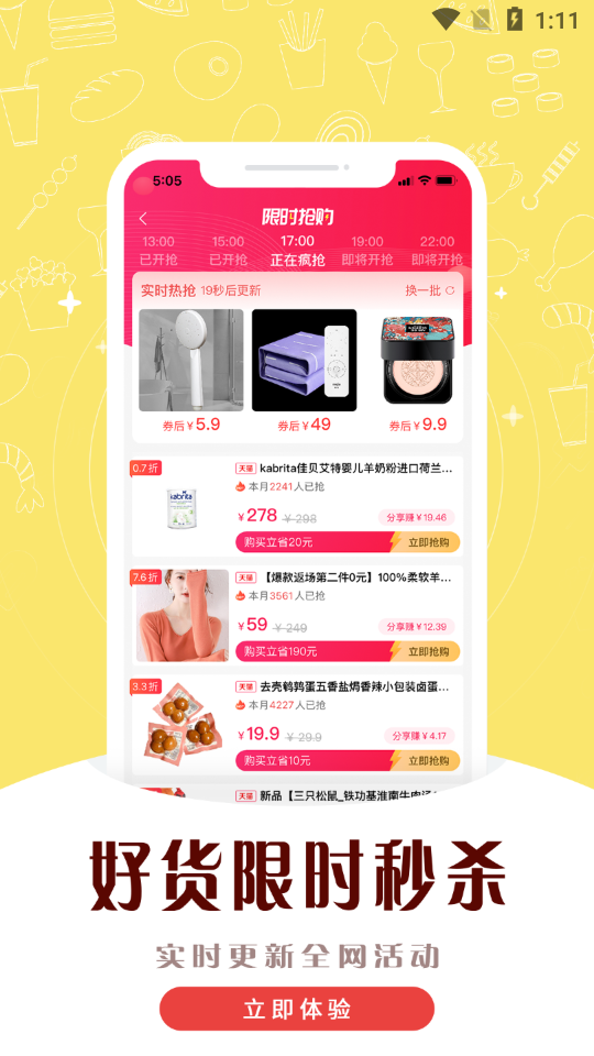 5.一款优惠购物商城。平台每日上新海量优质商品,各种种类应有尽有。