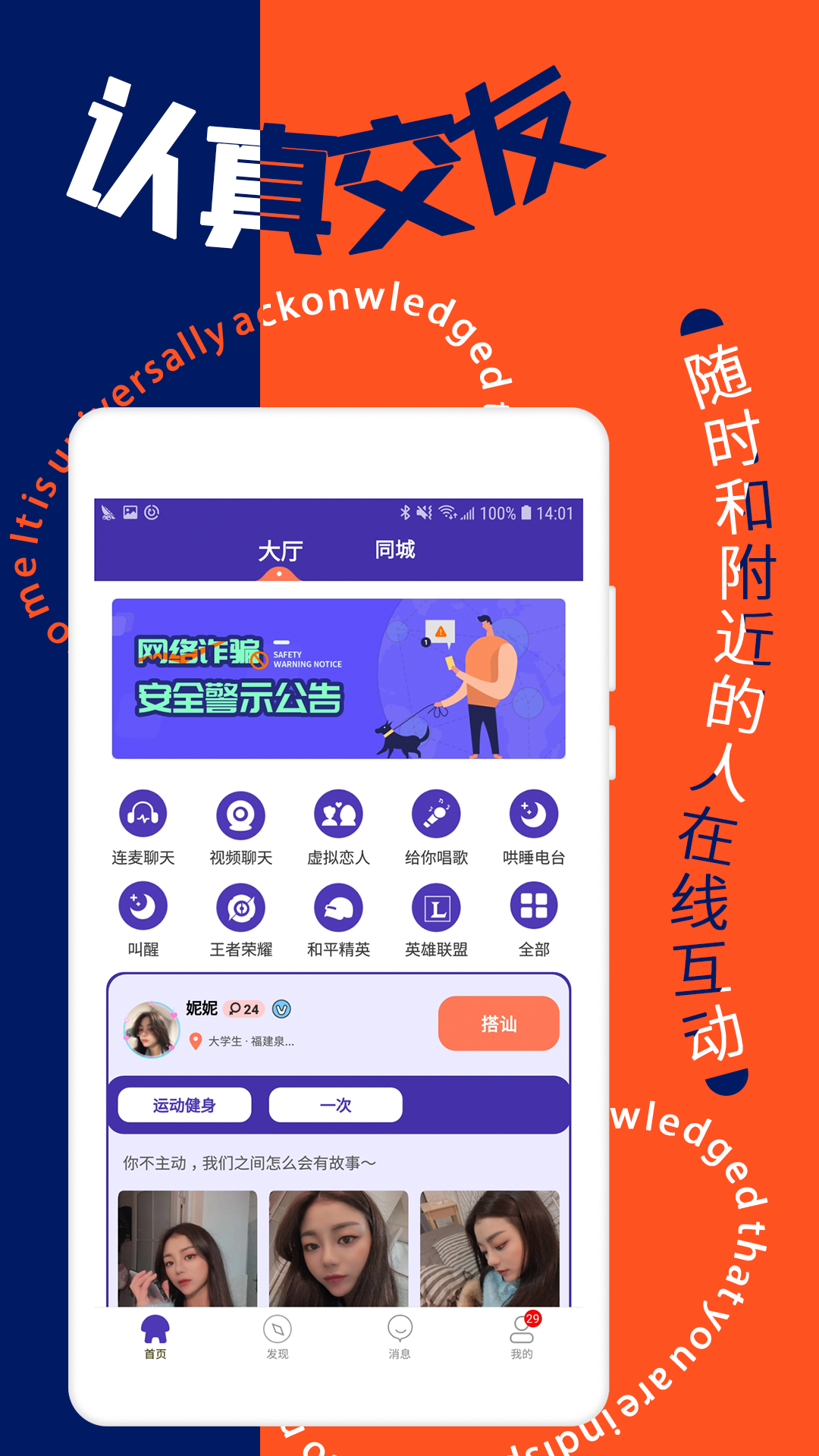 【同城交友】心跳同城交友,动动手指,找个高颜值有趣的灵魂畅聊,手指划一划,对象领回家