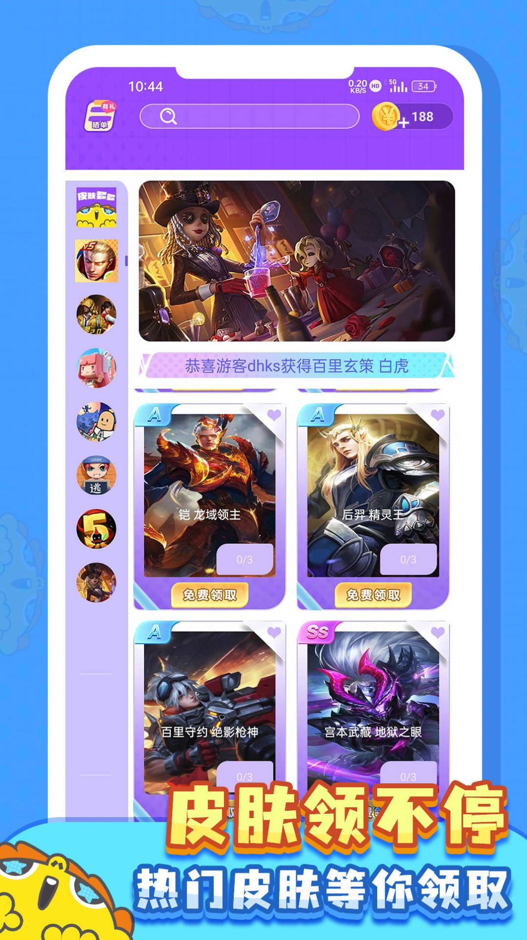 2、用户提供了一种全新的免费领取游戏皮肤的方式,可以大大节省用户的花费;