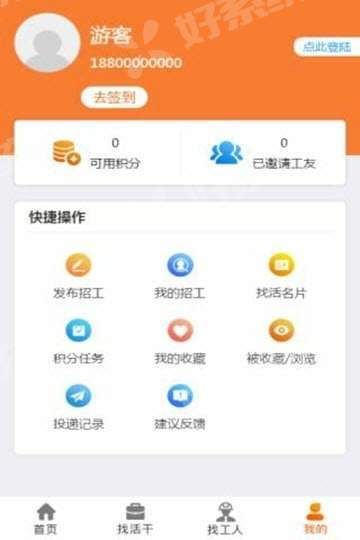 1、提供积分系统,工友们可以通过完成任务获得积分,提高自己在平台的信用度。
