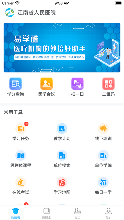 易学酷医学教育云平台是一款内置了大量医学学术课程的软件,可以通过手机快速学习,提供各类前沿医学咨询,是医务工作者的学习利器。该软件通过丰富的课程内容、知识点精讲、学习进度掌握和互动学习体验等功能,满足了不同学员的学习需求。同时,易学酷还提供医疗机构内部教培解决方案、医疗机构外部教培解决方案和医联体教培协同解决方案,致力于为医疗行业提供全方位的教育支持。