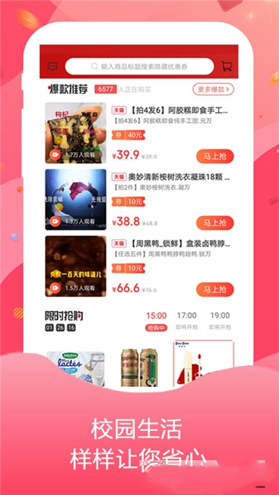3、涵盖全网爆款、周边生活及自营商城三大业务板块,为在校师生提供日常省钱购物、外卖、旅游、酒店、话费充值、会员特权等一站式线上线下购物及消费服务。