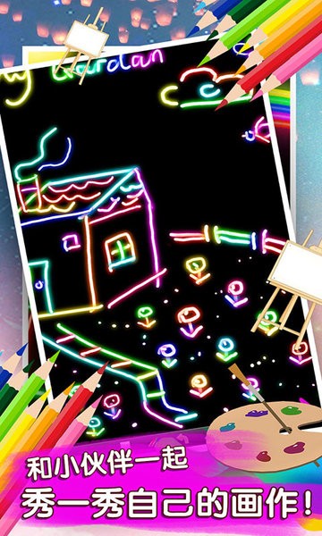 *丰富选择:软件提供了多款画笔和特效供用户选择,包括粗细不同的画笔、闪光特效、毛玻璃效果等,孩子可以根据自己的喜好选择合适的工具进行创作。