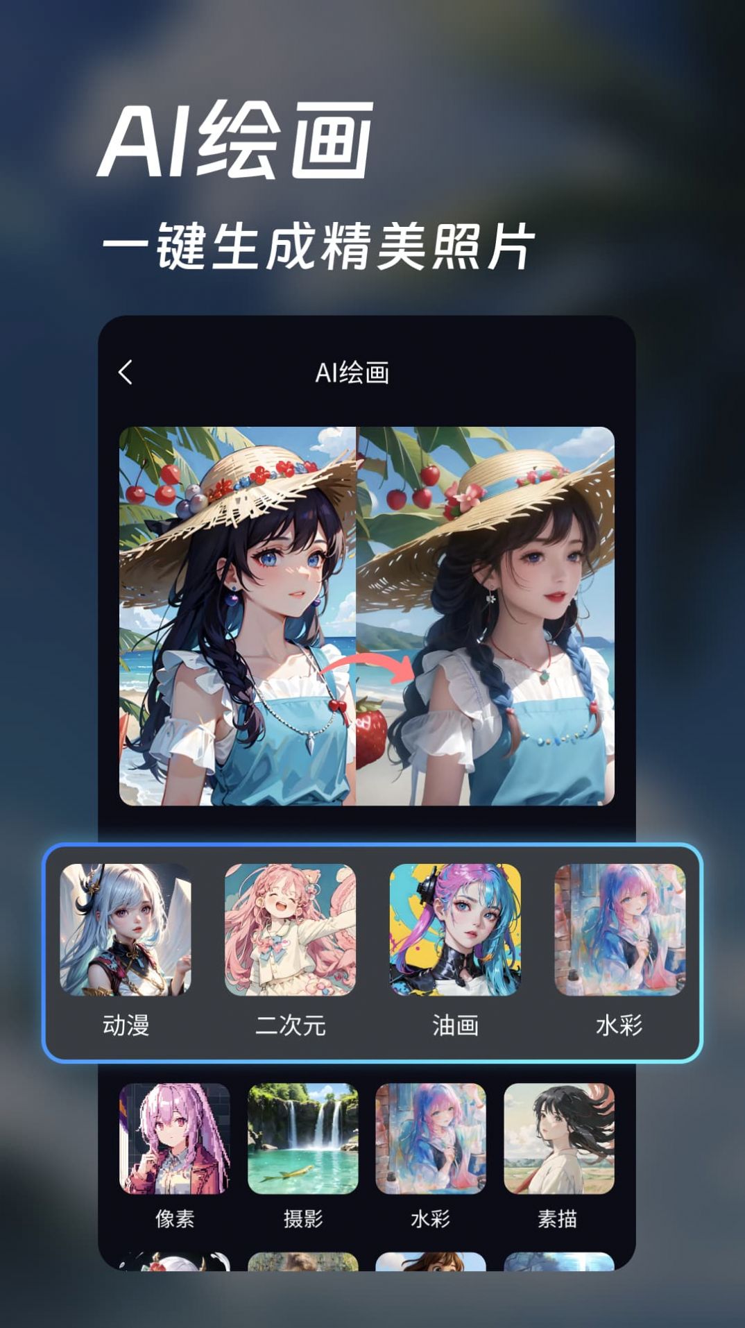 2、提供多种头像风格,包括卡通、手绘、霓虹、线条等,让你轻松打造专属头像!