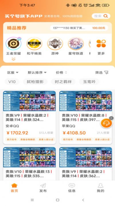 2、而且每一次的交易都是透明公开的,能够让你在这个软件当中以最低的价格购买到一些自己想要的游戏账号;