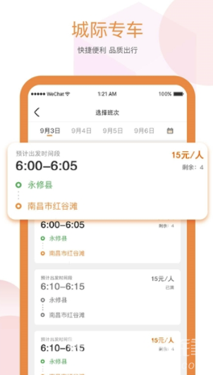 *可自由选定出行时间进行预约,支持短途、城际等多样化的出行服务,满足不同用户出行的需求。