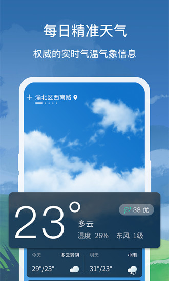 1)功能强大的天气预报APP,可精准定位用户所在地,准确提供该地的天气情况。