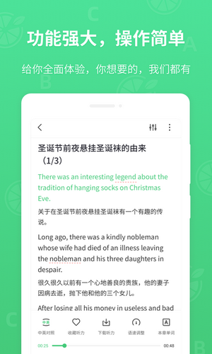 *逐句点听功能:通过逐句点听功能,用户可以逐句听取英语内容,有助于提高听力技能和准确理解语句。