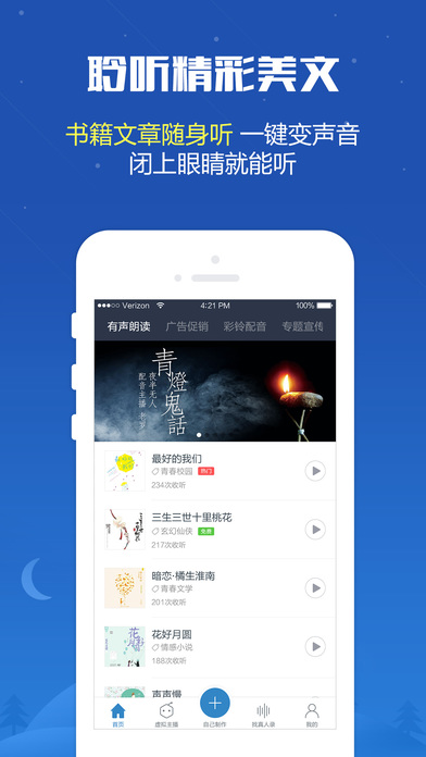 3、有声阅读:小说、杂志、课本、童话,打造属于你的个性化听书APP。