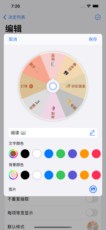 2、自定义选项:自定义转盘选项,如添加自己喜欢的餐厅、活动等,增加了个性化和专属感。