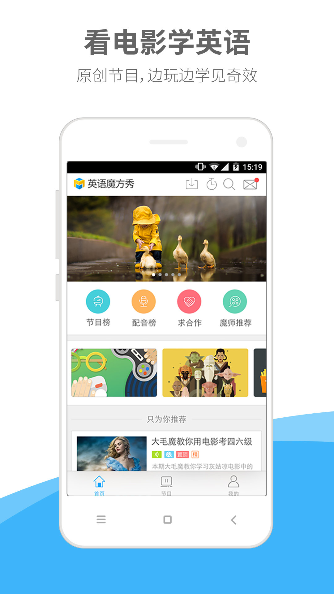 1、带读效仿,就是说亲身为每一句经典对白配声,最终转化成这段你配声的影片视频短片。特有的慢速度视频语音,高质量音色,帮你练口语,听透,把最正宗的视频语音录进去脑海中。基本上每日常有最新的电影美国电视剧视频短片构成的魔方课程出炉。