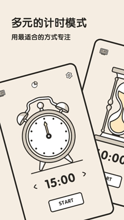 1、选择专注时间:根据需求选择不同长度的专注时间,帮助提升工作或学习效率。