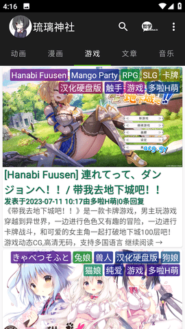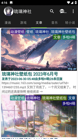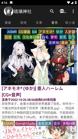 3、无论您是初次用户还是二次元爱好者,琉璃神社ACG都能满足您的需求,为您带来流畅、便捷、高品质的二次元世界。所以,你不妨试试琉璃神社ACG软件,享受ACG的精彩亮点!
