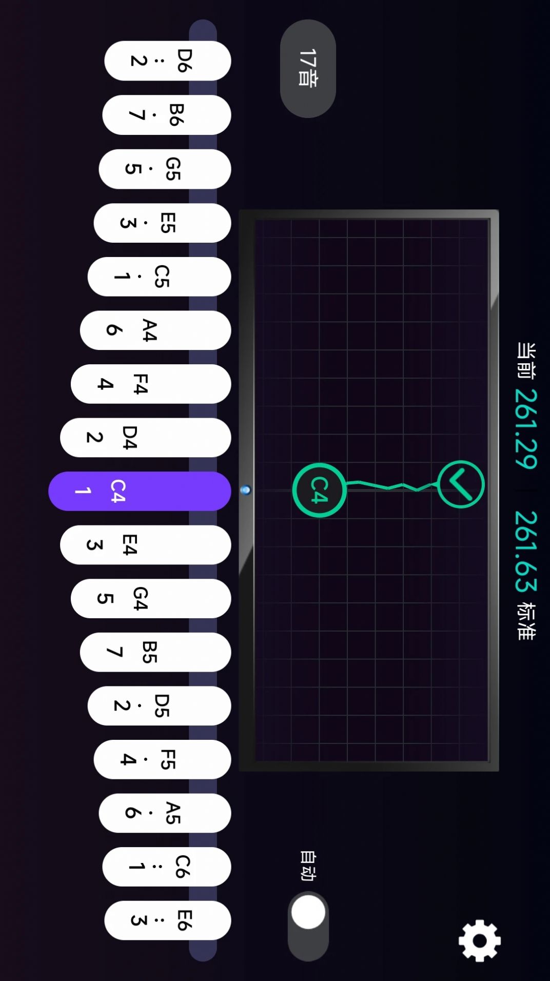3、将拇指钢琴弹奏的声音录制到应用程序中,然后应用程序会判断钢琴的音高。