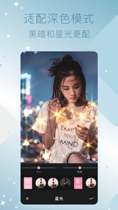 *软件提供了专属发光点的拍摄功能,可轻松定格独一无二的效果,让照片更具创意。