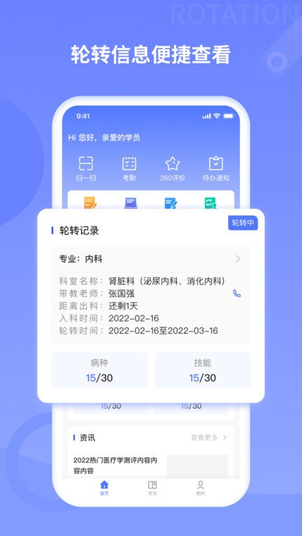 、规培训练营针对医院单位医生轮转发展和自我提升需求,围绕轮转排班、在线考试、在线学习、咨询浏览、导师选拔、申请离职等提供优质的研发功能服务部门。