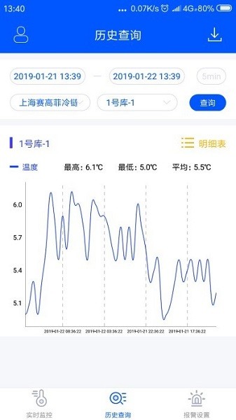 1)报表查询:通过软件进行报表查询,方便地查看冷库温度历史记录,并进行数据比对和分析。