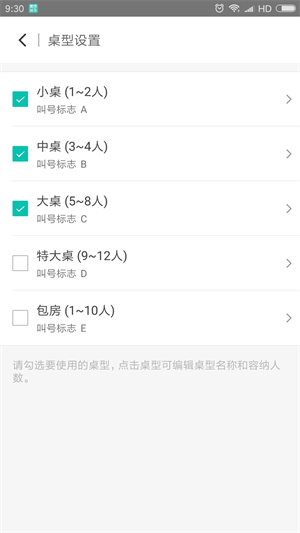 3、店内不同桌子有详细的分类,如小桌子、中桌子、大桌子。