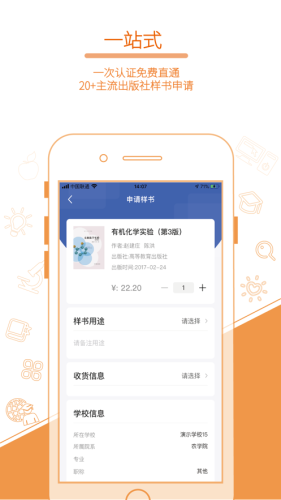 2、一站式、一次性认证,免费直接申请主流出版社20+样书。