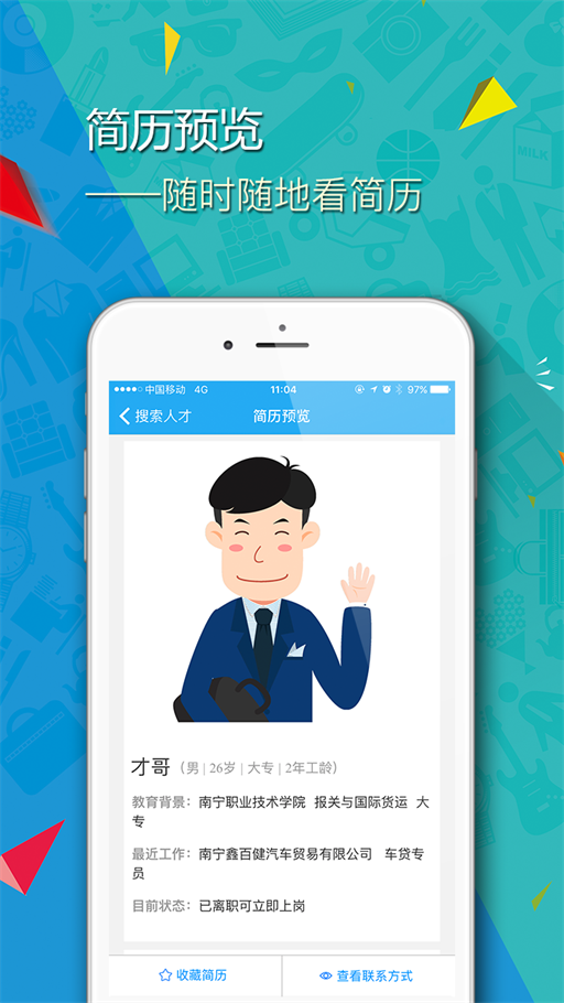 *用户可以浏览各类人才简历,了解求职者的经验和技能,并根据自己需求收藏合适的人才。