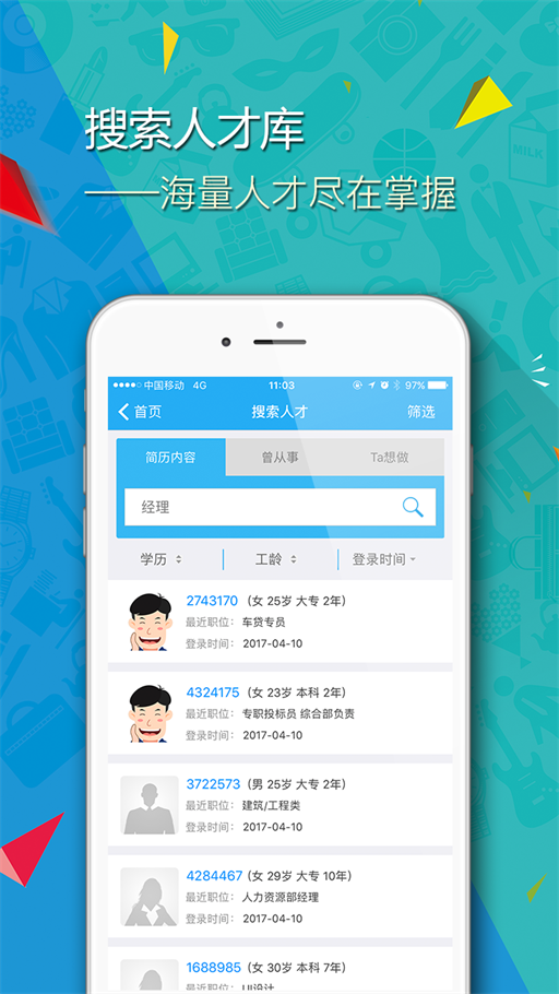 4.招聘宝提供强大的人才搜索功能,用户可根据需求进行搜索,快速准确地找到合适的人才。