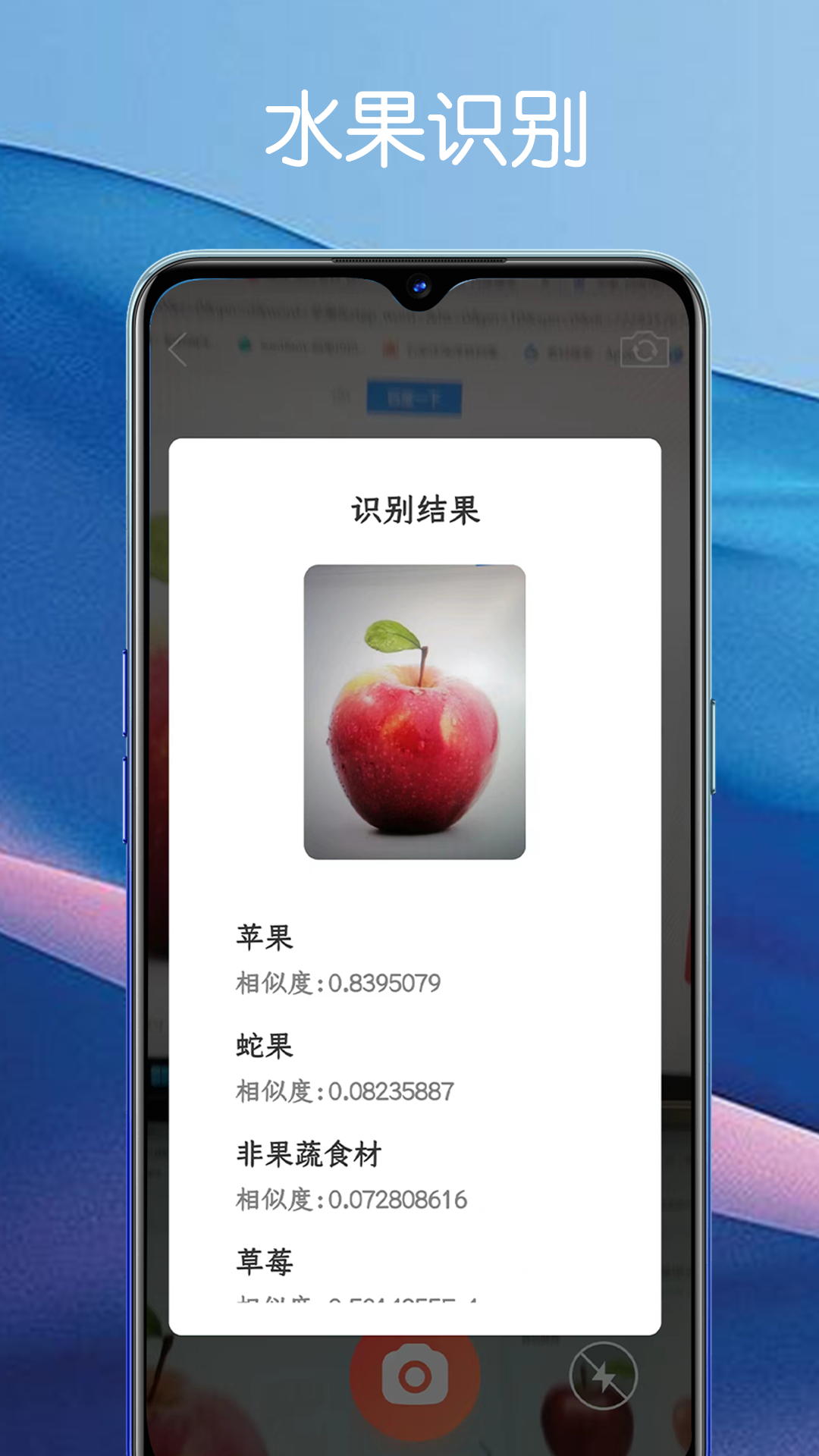 1、只需对准手机拍照,就能快速识别出水果的品种和营养成分,方便大家更好地享受水果这个健康食品;