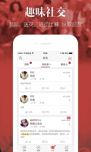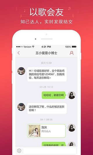 2、歌曲讨论、聊天互动,通过歌曲寻找朋友,让更多粉丝关注你的声音;