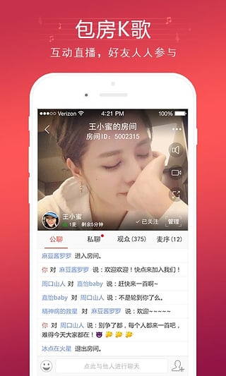 1、在线卡拉OK功能,声音高品质的伴奏库,完善的录音和上传功能,给您震撼的K歌体验。