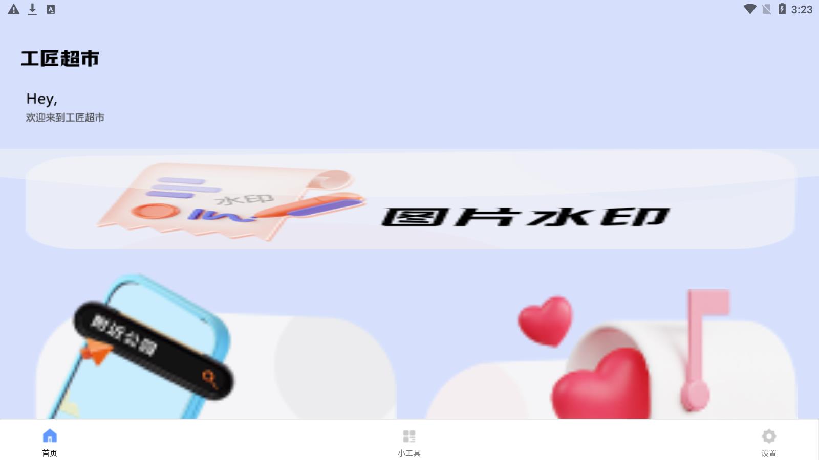 工匠超市是一款免费的手机工具箱软件,这里的工具很多,都是可以免费使用的,软件内的工具可以给用户的生活带来许多便利,这里还有水印功能,可以帮助用户给照片添加水印,软件界面十分的干净舒适,操作起来十分的舒适,所占手机内存也不赶紧来下载试试吧。