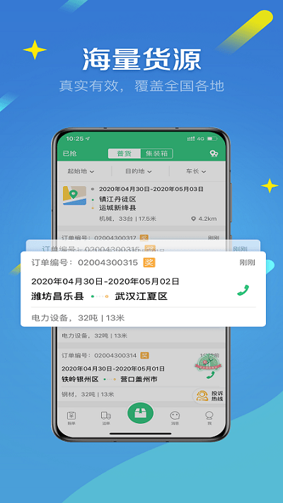 *全新的物流货运服务平台,为货运司机提供在线寻找货源和客户的便利,省去了繁琐的中间环节。