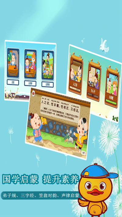 许愿鸭识字是一款专业的学习教育软件,提供丰富的汉字资源和教学课程,帮助孩子提高识字能力、丰富语言知识,轻松学习。软件操作简单,提供海量的学习资源,以及复习测试和儿童故事等功能,让孩子在愉快的学习氛围中提升智力。用户可以随时选择各类汉字启蒙资源进行学习,让在线识字变得便捷。