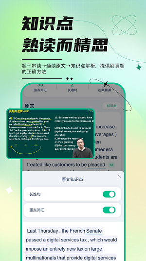 *提升阅读能力:提供大量精选的英语阅读材料,通过专业解析和练习题,帮助用户快速提升阅读理解能力。