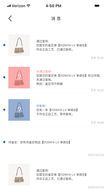 *支持奢侈品的线上鉴定,用户可以通过手机随时随地进行鉴定任务。