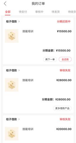 3、订单管理:用户可以在桔多多平台上方便地管理自己的订单,查看订单状态、还款记录等,方便快捷。