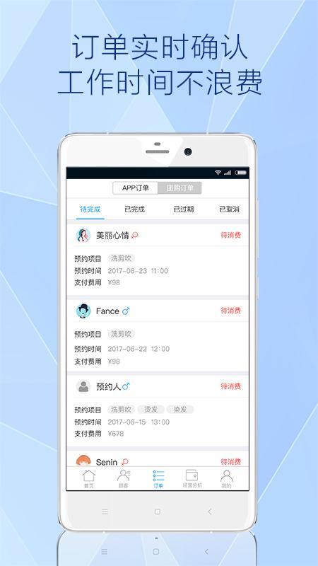 3.实时确认订单功能,美容师能够随时了解顾客的预约状态,减少预约冲突和误会。