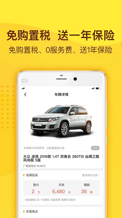 3、花生好车有超低首付,低至10%,最多可分六年。用户支付首付款并办妥手续后即可提车。质量有保证,购车一年后可换新。如果您需要的话,赶快下载吧。