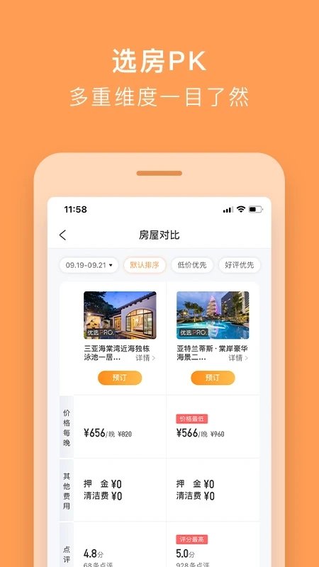 1、专业的房源评级,帮助您快速准确找到舒适的房间;