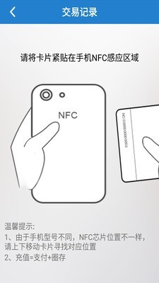 1、刷卡时,将卡贴在具有NFC功能的Android手机背面的NFC感应区域