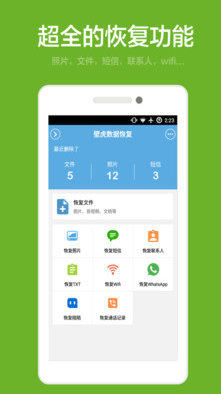 2、免费无广告的手机数据恢复工具,支持通讯录恢复、联系人恢复、短信恢复、照片恢复、图片恢复、视频文件恢复、SD卡恢复等。